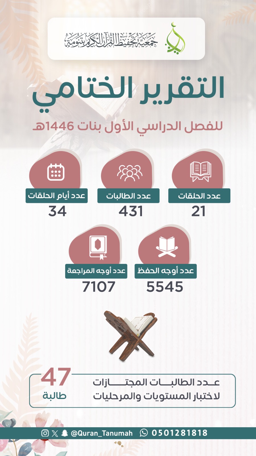 التقرير الختامي لحلقات البنات للفصل الدراسي الأول لعام 1446هـ